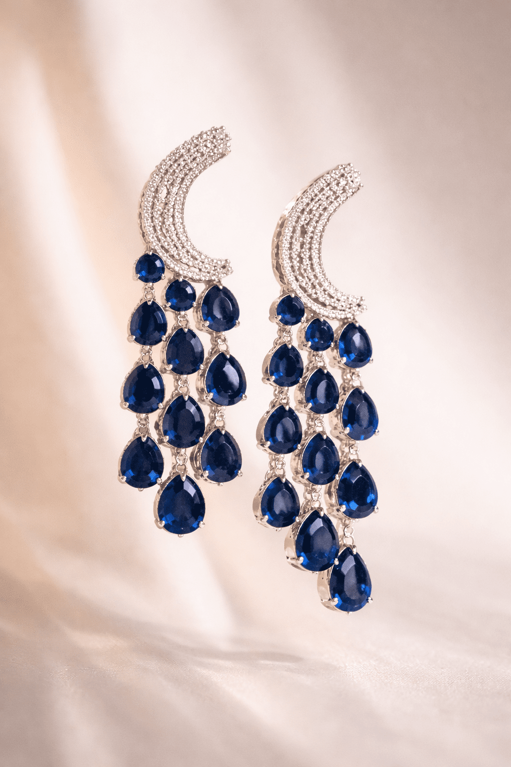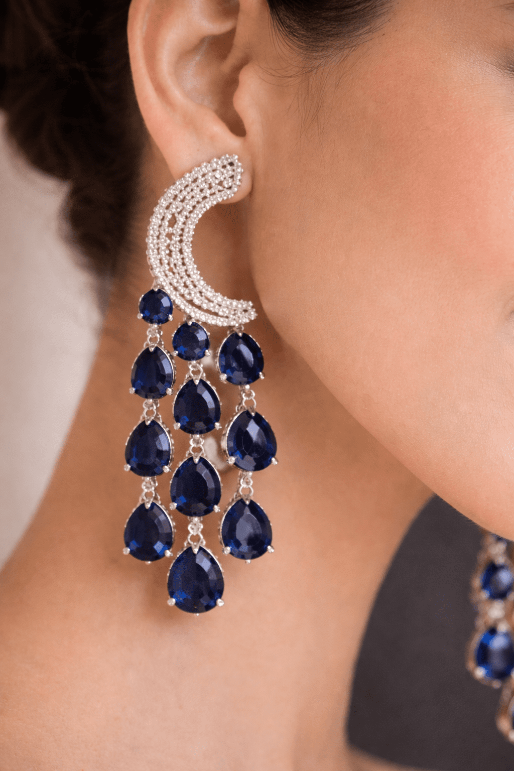 PinkWynk Blue Teardrop Crystal Silver Earrings