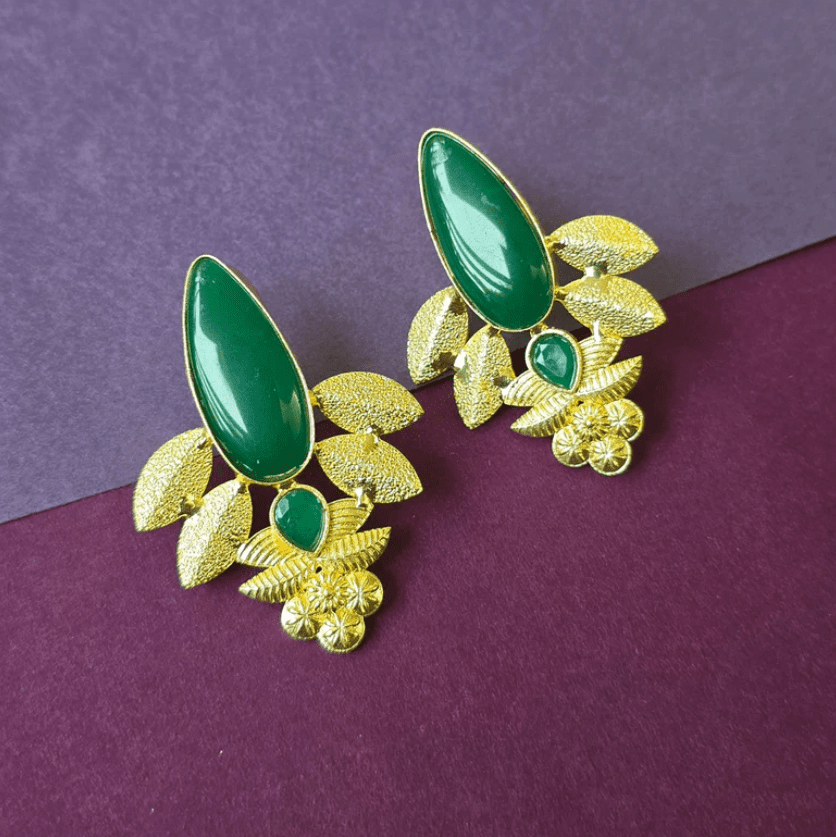 PinkWynk Gold Plated Green Stone Stud Earrings for Women