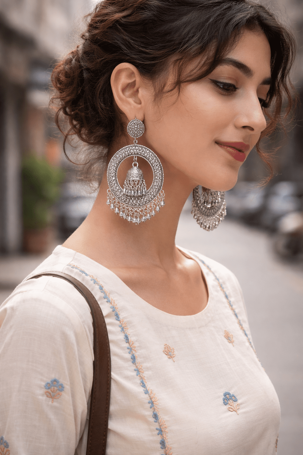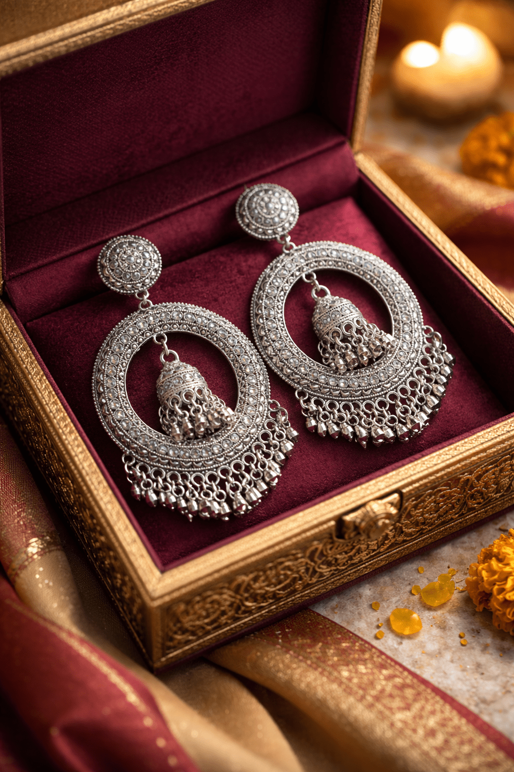 PinkWynk Oxidized Silver Chandbali Jhumka