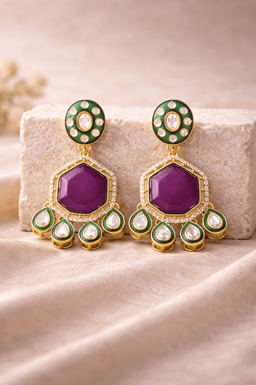 Pinkwynk Royal Purple Kundan Stud Earrings