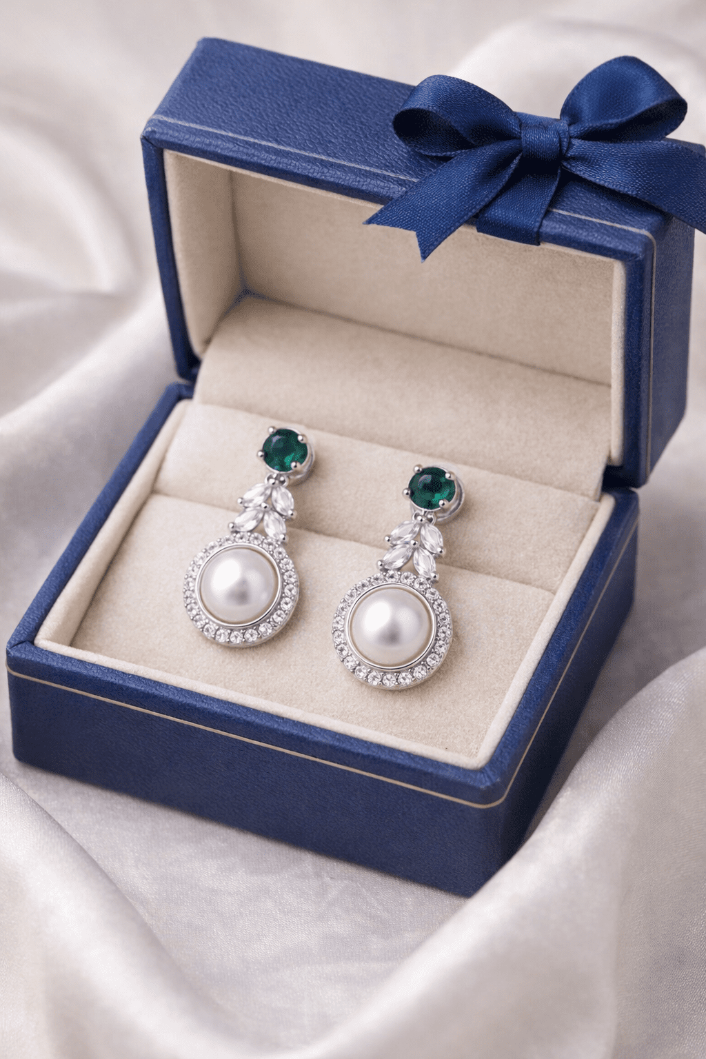 PinkWynk Green Stone Pearl Drop Silver Earrings