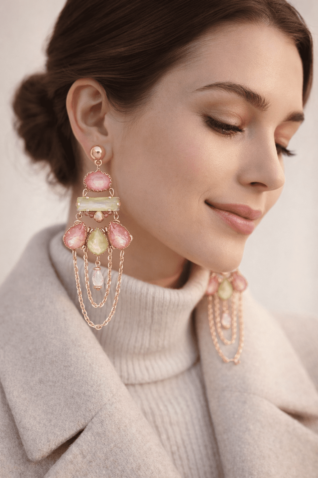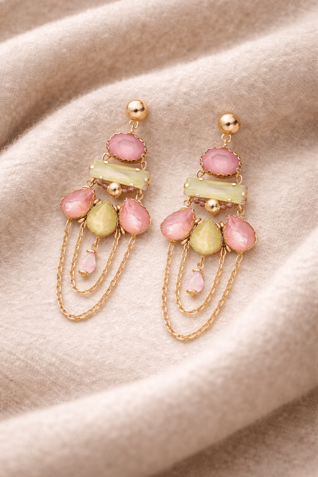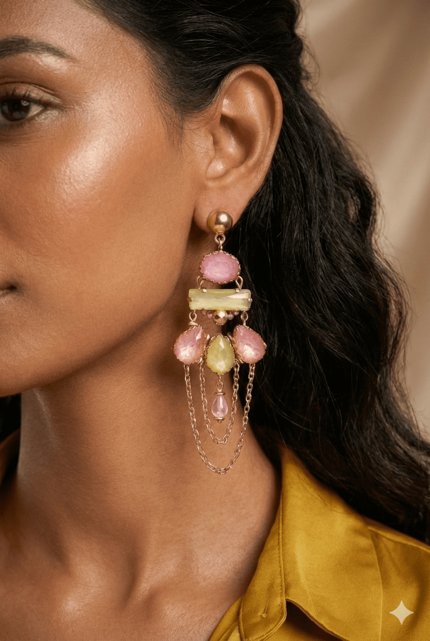 PinkWynk Stone Long Drop Gold Earrings