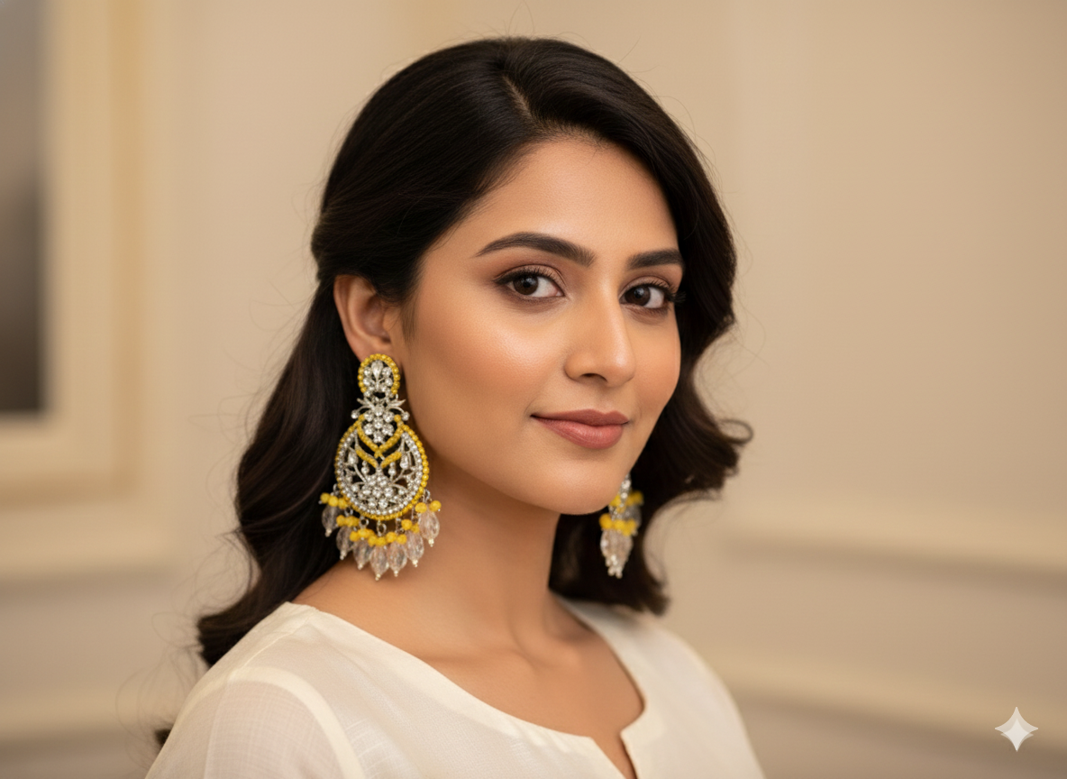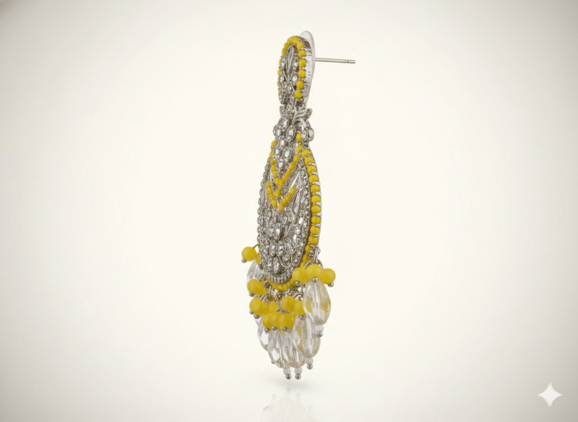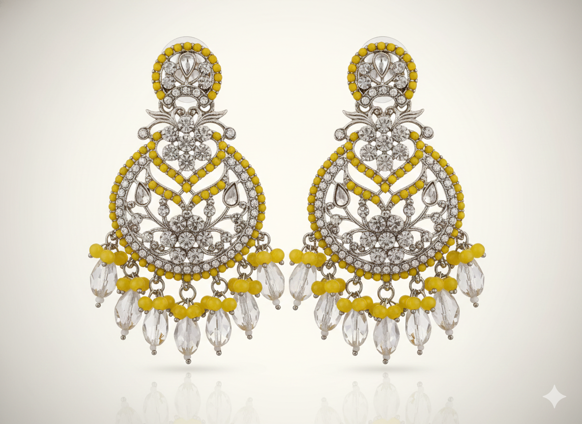 PinkWynk Yellow Bead Crystal Chandbali Earrings